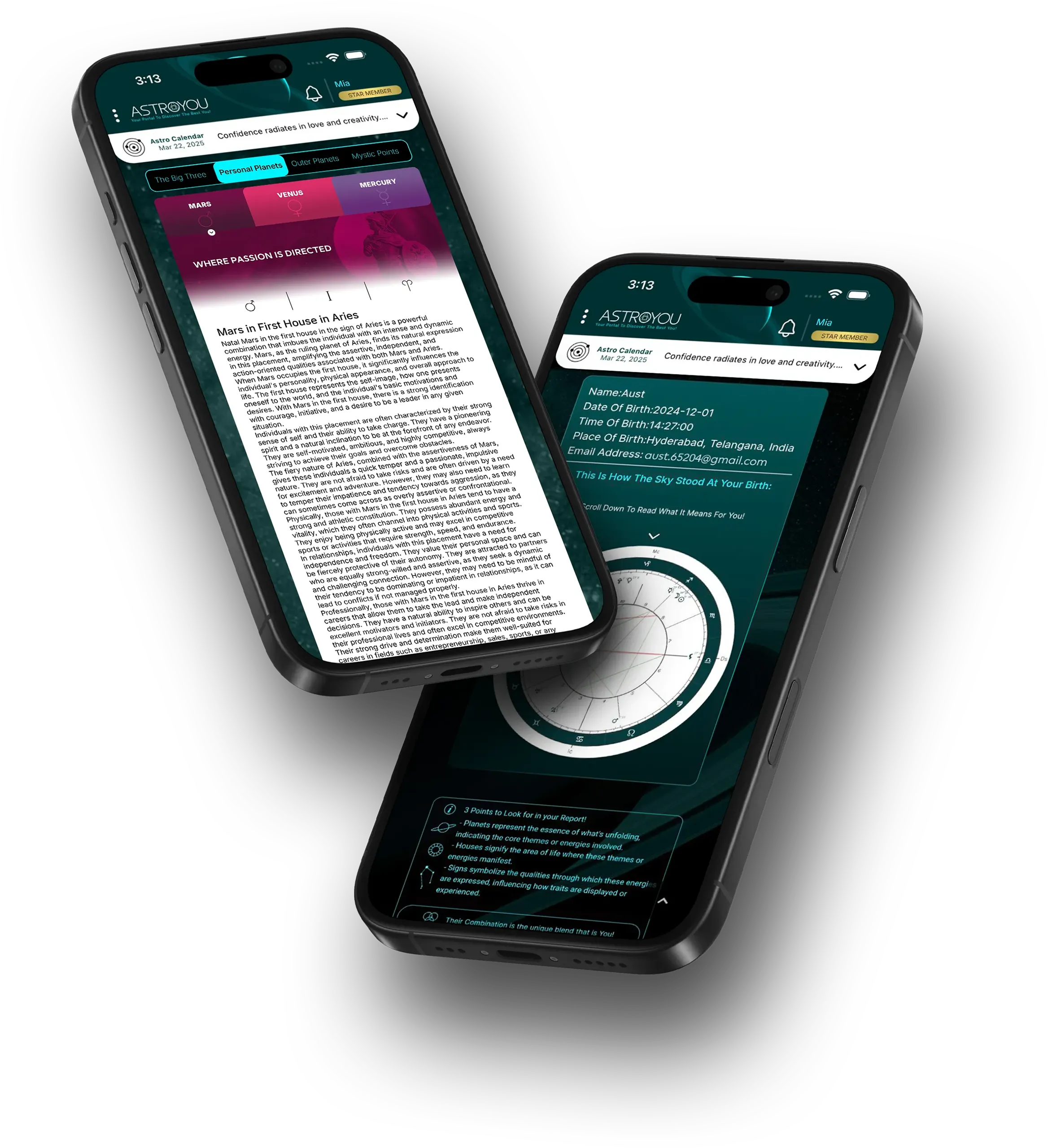 AI That Speaks Your Chart – Insights are grounded in your placements and aspects, not generic horoscope fluff.
