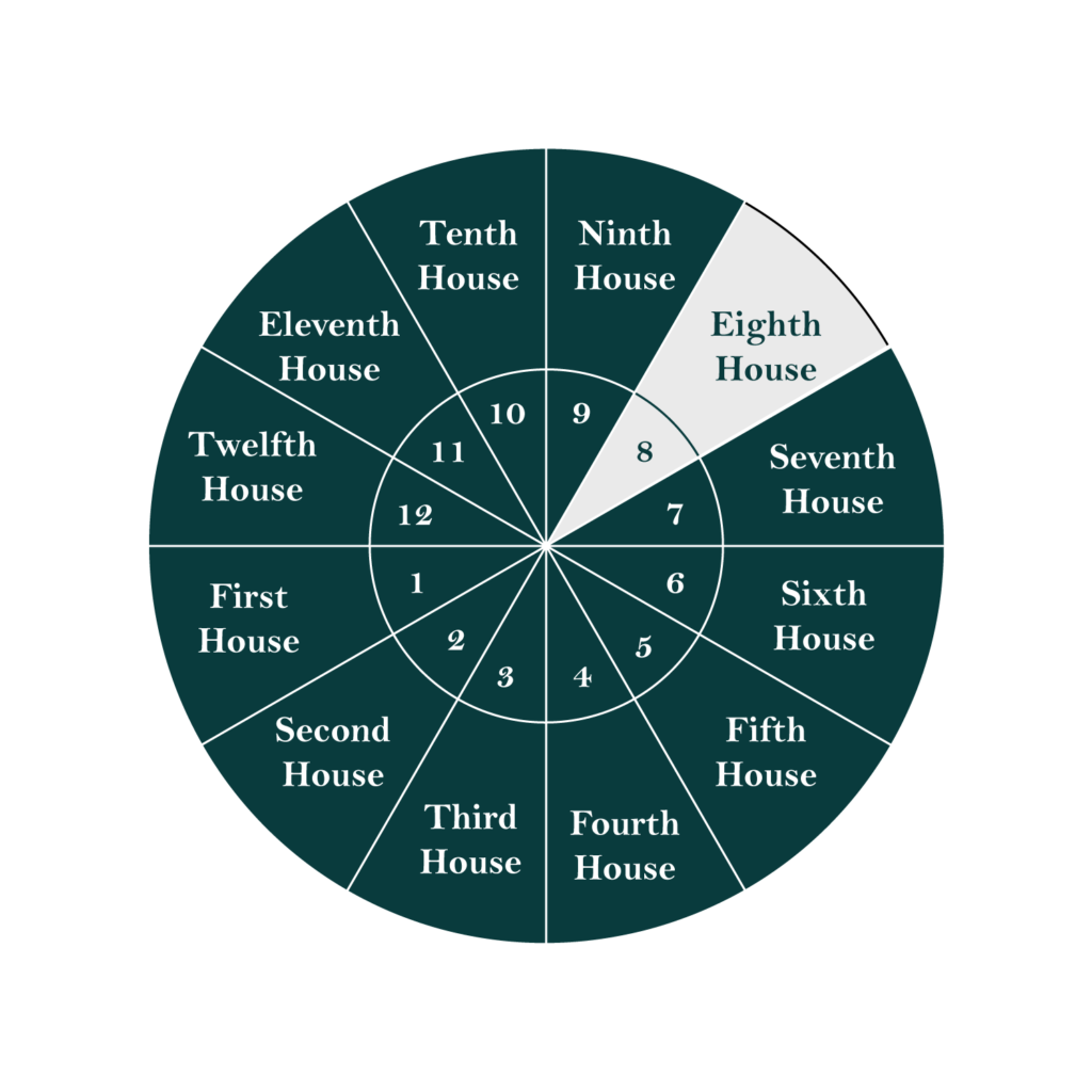 The Eighth House rules death—not just the end of physical life, but symbolic deaths throughout one’s journey. Endings, losses, and grief are part of its terrain, as are beliefs about the afterlife, spiritual transitions, and experiences that force us to confront mortality and impermanence.